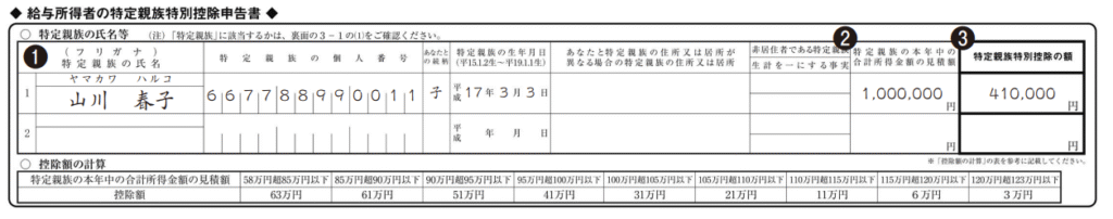 例えば、妻も働いてて妻が18歳の子どもを扶養している場合はその情報を書く!