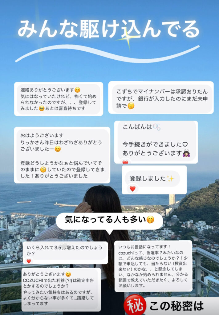 審査に通過すれば、いよいよCOZUCHIを活用した投資のスタート!