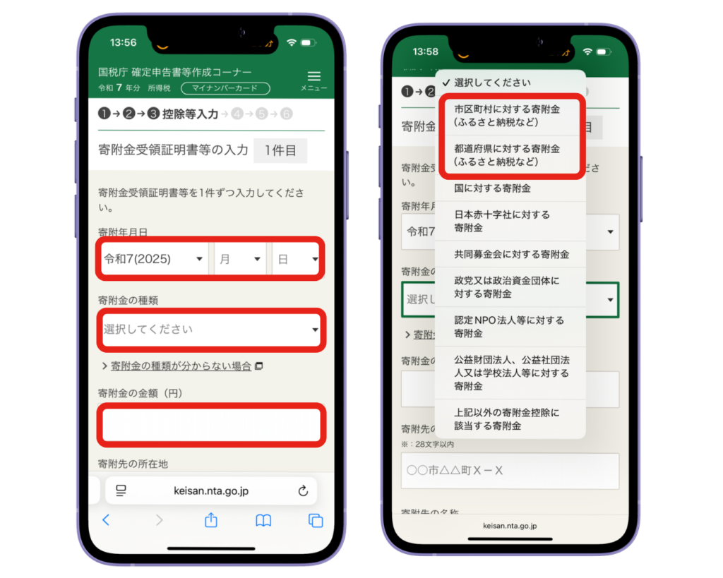 寄付金受領証明書がふるさと納税した自治体から送られてくるからその紙を見ながら申請してね!