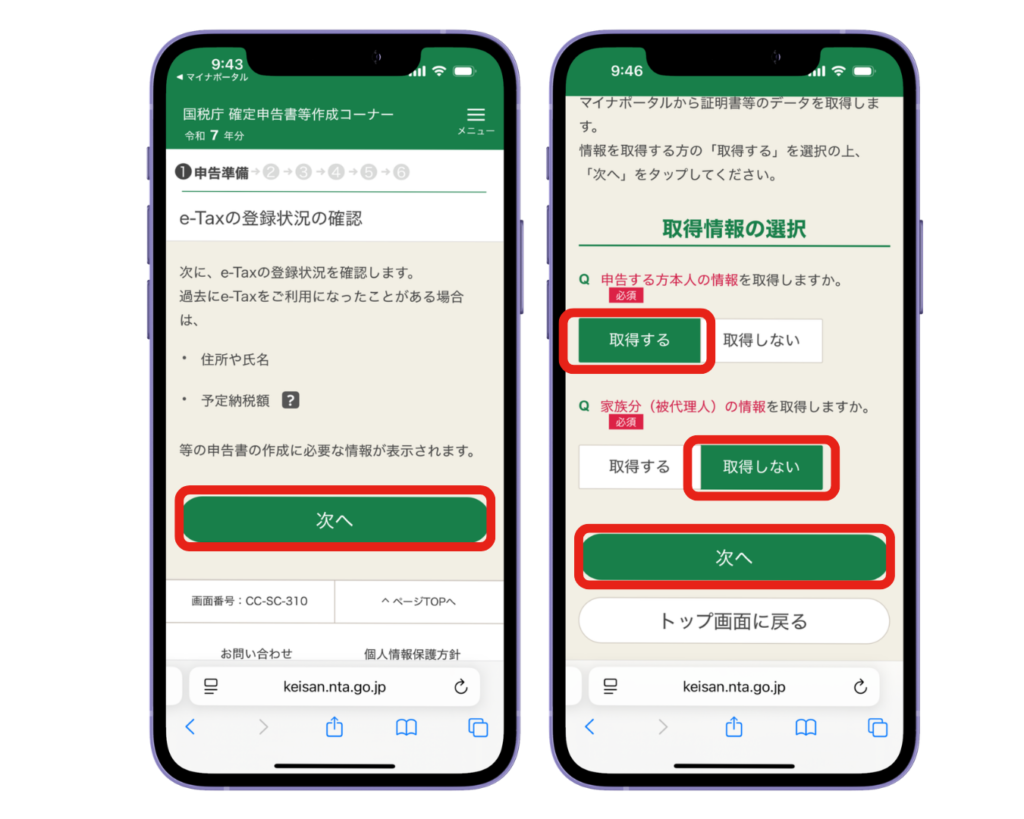 家族の分の医療費も合わせて確定申告する場合は、家族分も『取得する』でOK
