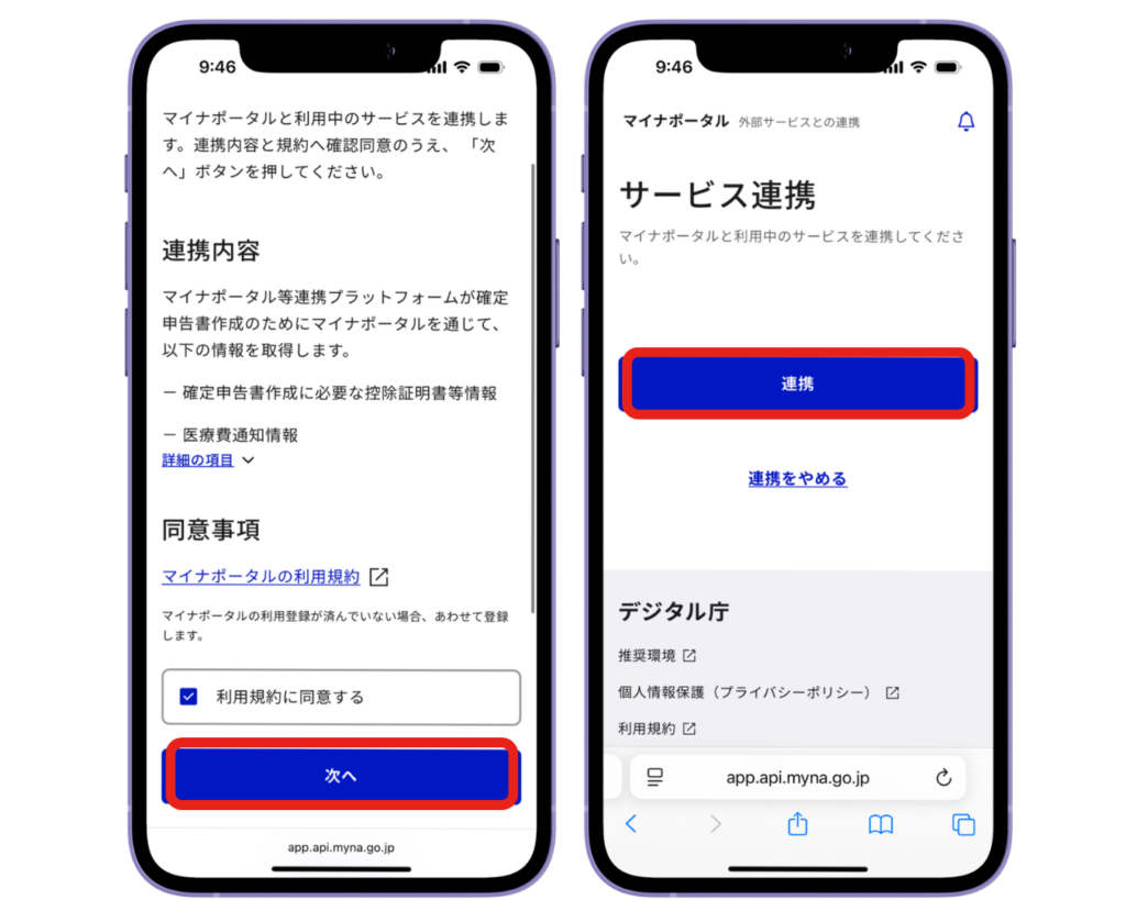 ③マイナポータルに勝手に移動するので『連携する』