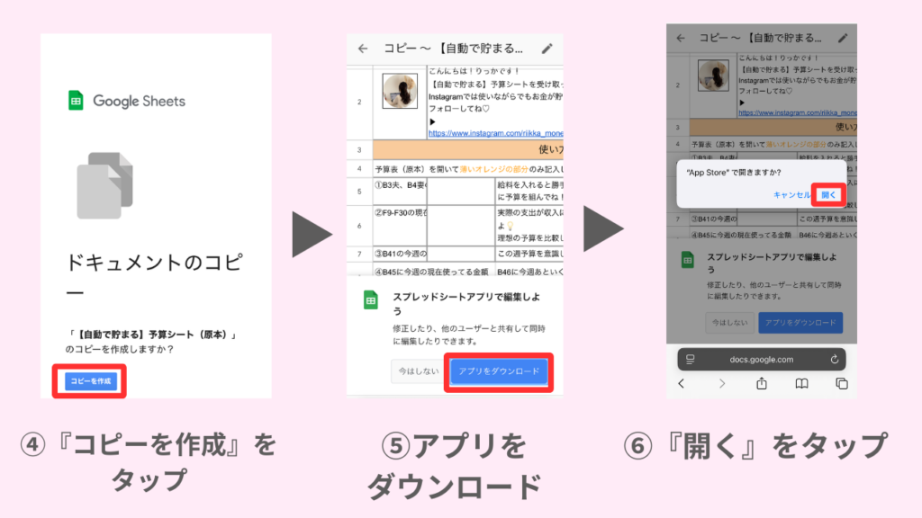 アプリからシートを開いて使ってね!